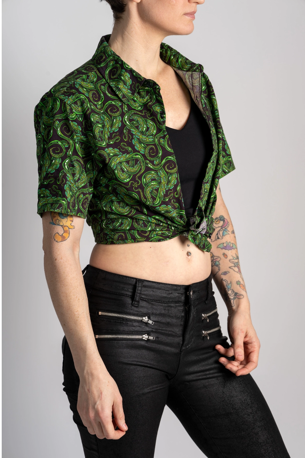 Peridot Tentacles | Button Up Shirt with Rounded Hem